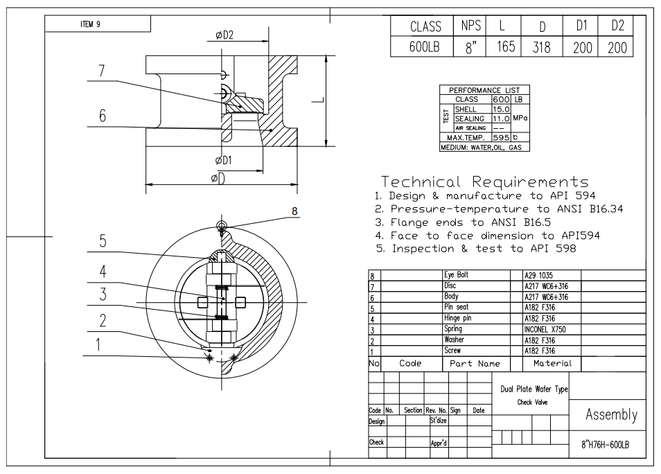 يقدم Dervos صمام فحص رقاقة مميز مصمم للطلب على التطبيقات الصناعية. صنع من قبل A217 WC6+316 ، 8 "600 رطل رقاقة التحقق من صمام لديه الخصائص الهيكلية للوحة المزدوجة.