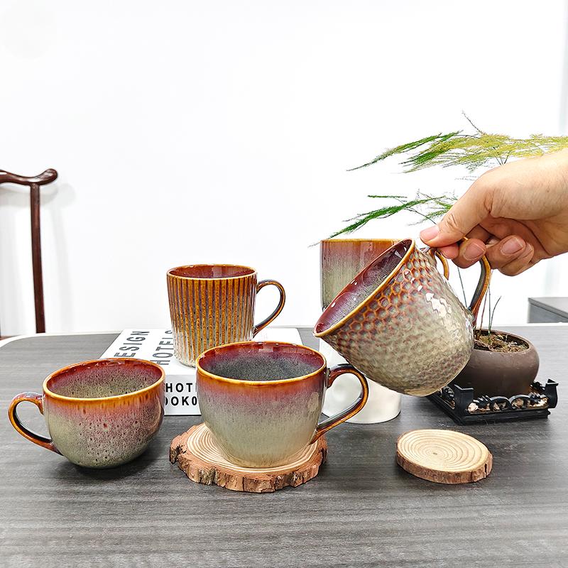شعار مخصص فنجان القهوة المصنوع يدويًا الأقداح السيراميك يدويًا هدية كوب شاي الفخار الياباني